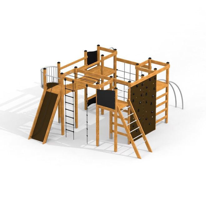 Šis rotaļu komplekss lieliski papildina jebkuru bērnu rotaļu laukumu, veicinot aktīvu dzīvesveidu un fizisko attīstību. Tā daudzveidīgās kāpšanas un rotaļu iespējas palīdz bērniem attīstīt koordināciju, spēku un līdzsvaru, vienlaikus sniedzot prieku un izklaidi ārpus telpām.