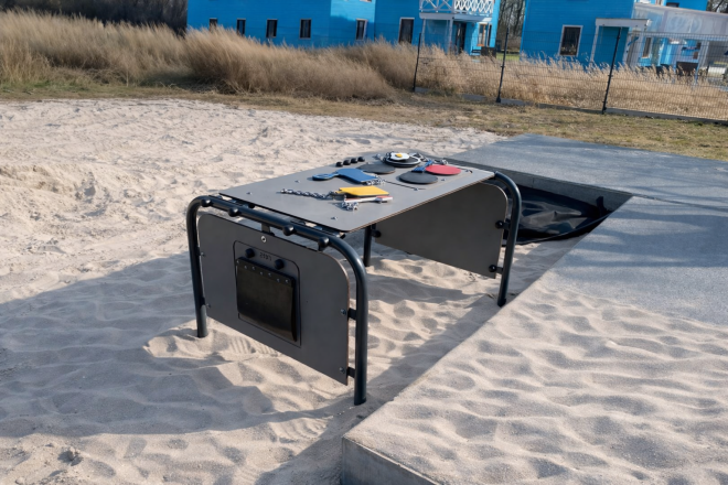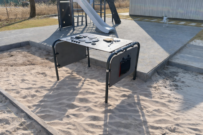 Šī rotaļu virsma ir izgatavota no izturīga HPL materiāla, pulverkrāsotas tērauda konstrukcijas, nerūsējošā tērauda ķēdēm un HDPE komponentiem, nodrošinot ilgmūžību un drošību pat intensīvas lietošanas apstākļos.
