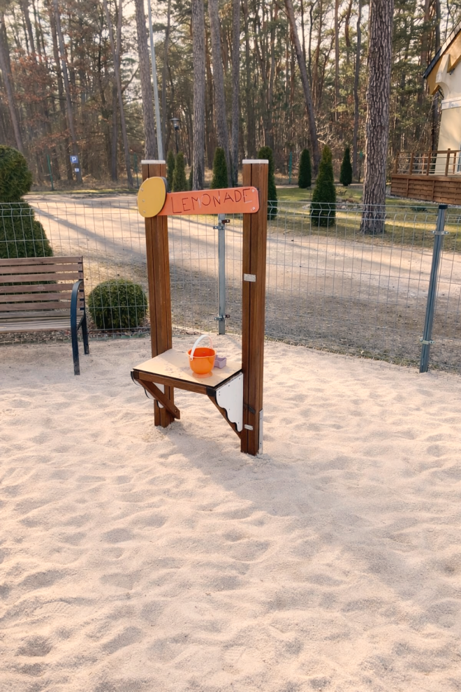 Lemonade Stand ir lieliski piemērots bērnu rotaļu laukumiem, dārziem un skolu teritorijām, veicinot sociālās mijiedarbības un radošuma attīstību. Tas ir ideāls elements, kas aicina bērnus spēlēties kopā un attīstīt komunikācijas prasmes, vienlaikus nodrošinot drošu un saistošu vidi.