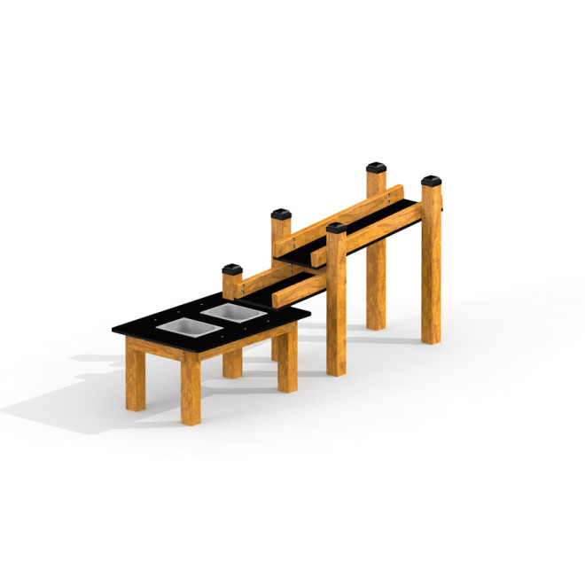 Šī rotaļu stacija lieliski iederēsies dabas un klasiskā stila rotaļu laukumos, piedāvājot bērniem iespēju mijiedarboties ar ūdeni un smiltīm, veicinot sensorās prasmes un iztēli. Tā ir ideāla vieta izklaidei un mācībām brīvā dabā.