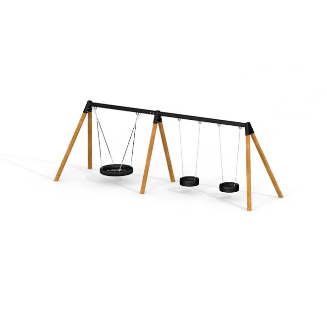 This is almost impossible to find a playground without a swing! While playing on a swing child learns a coordination, at the same time working on maintaining balance and developing physical fitness.Double Bay Wooden Swing w/ 1 Bird Nest Seat (⌀ 90 cm) & 2 Tyre Seats – Izklaidējoša šūpuļtīkls ar dabisku koka šarmu un daudzpusīgām sēdvietām.