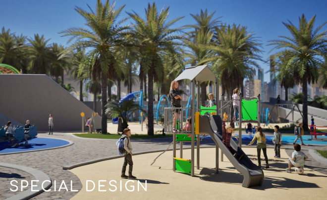 Šī rotaļlaukuma konstrukcija ir ideāli piemērota gan publiskām ārtelpām, gan privātiem dārziem, veicinot bērnu fizisko attīstību un sociālo mijiedarbību. Daudzveidīgie elementu risinājumi, tostarp kāpšanas siena, ļauj bērniem izaicināt sevi un izbaudīt rotaļas dažādos līmeņos.